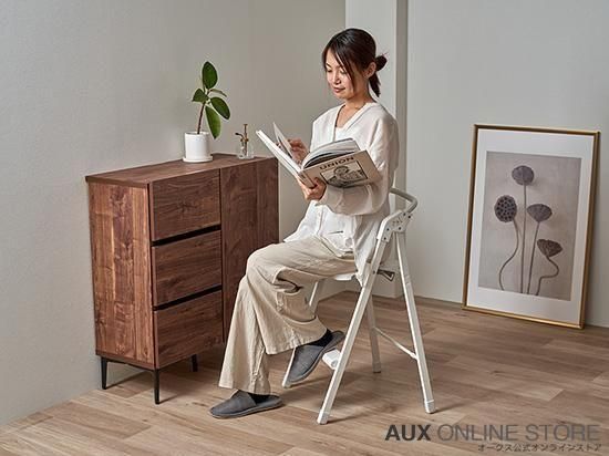 座面の上げ下げだけで脚が自然に開閉するワンアクション設計。開閉もスムーズです。