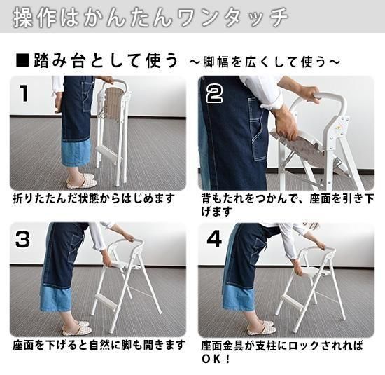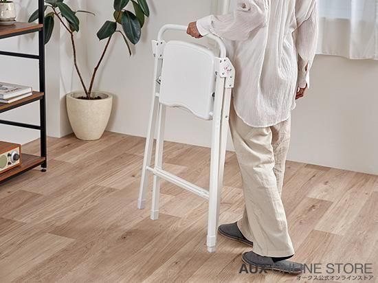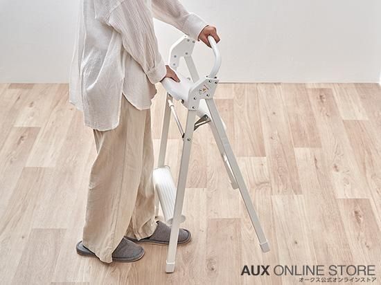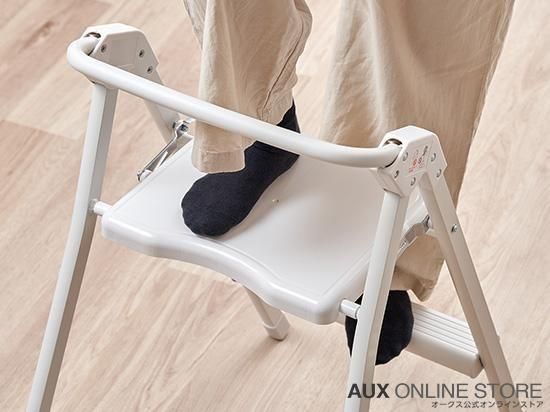 背もたれは、踏み台使用時には手すりになるので、乗り降りも楽に行えます。
