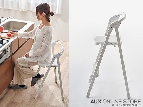 高い位置のモノを取り出したり、エアコンや換気扇等のお掃除をするときは、脚を広げて踏み台に。脚幅を狭くすればキッチンチェアになり、皮むき等、調理の下ごしらえも楽な姿勢でできます。