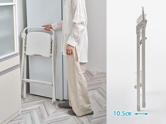 折りたためば、たったの幅10.5cm。 ちょっとした隙間にも収納できます。